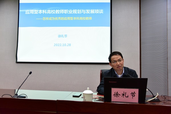 开班仪式结束后,安徽省“模范教师”、mobile288-365_英国365bet娱乐_365bet在线足球开户学院徐礼节教授以“应用型本科高校教师职业规划与发展琐谈——怎样成为优秀的应用型本科高校教师”为题,从“意识到位”“认识明确”“定位清晰”“视野开阔”“遵守规范”“端正态度”“付诸行动”七个方面围绕教师职业规划与发展路径,为新教师生动讲授了第一课。